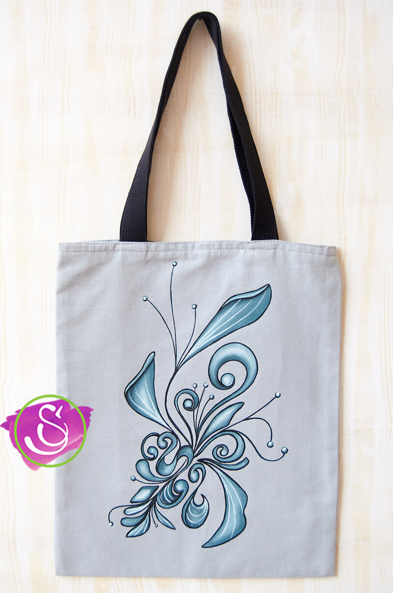 Borsa in cotone dipinta a mano.