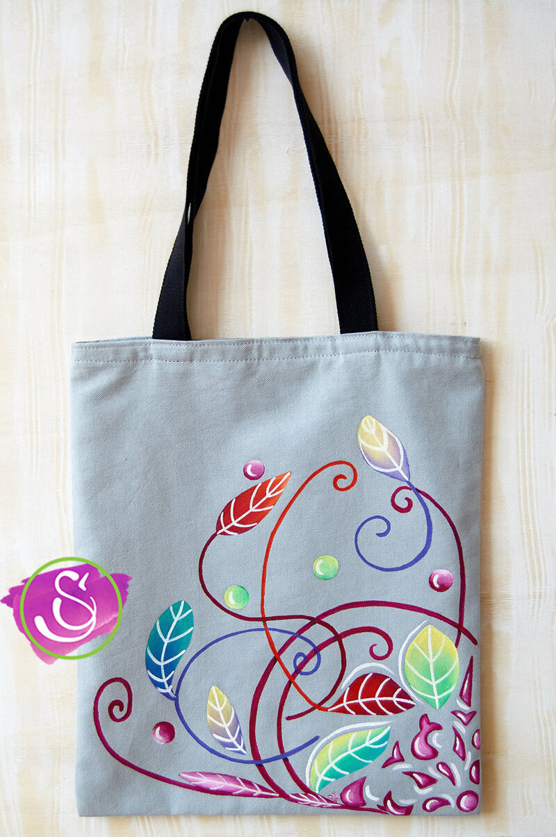Borsa in cotone dipinta a mano.
