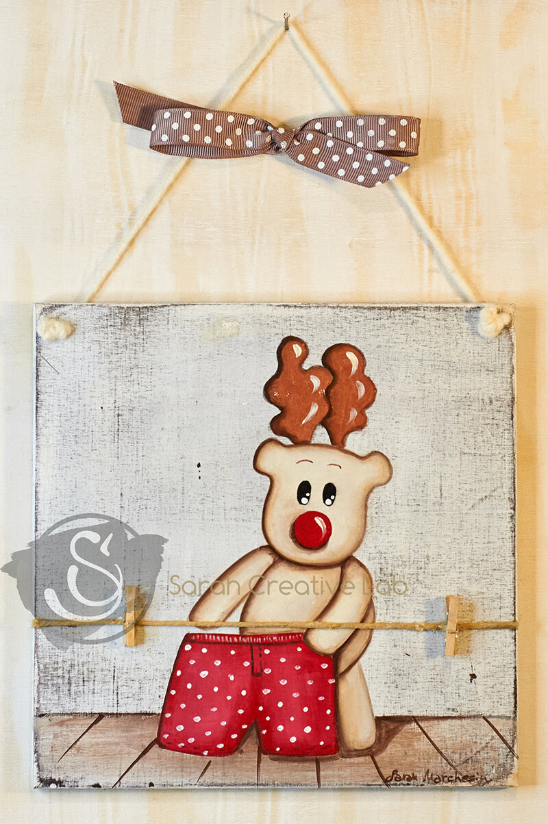 Quadro "Bucato" della collezione "Le Renne" dipinto a mano su legno 20x20 cm.