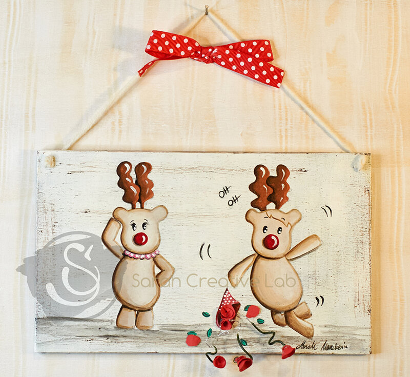 Quadro "Love" della collezione "Le Renne" dipinto a mano su legno 15x25 cm.